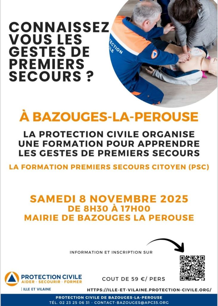 La Protection Civile de Bazouges-la-Pérouse propose une journée de formation aux premiers secours (PSC –…