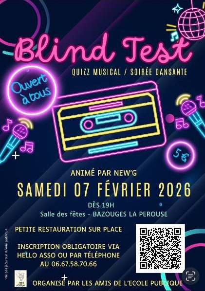 Agenda L’APE Les amis de l’école publique organise le samedi 7 février 2026 une soirée Blind test ( quizz musical )