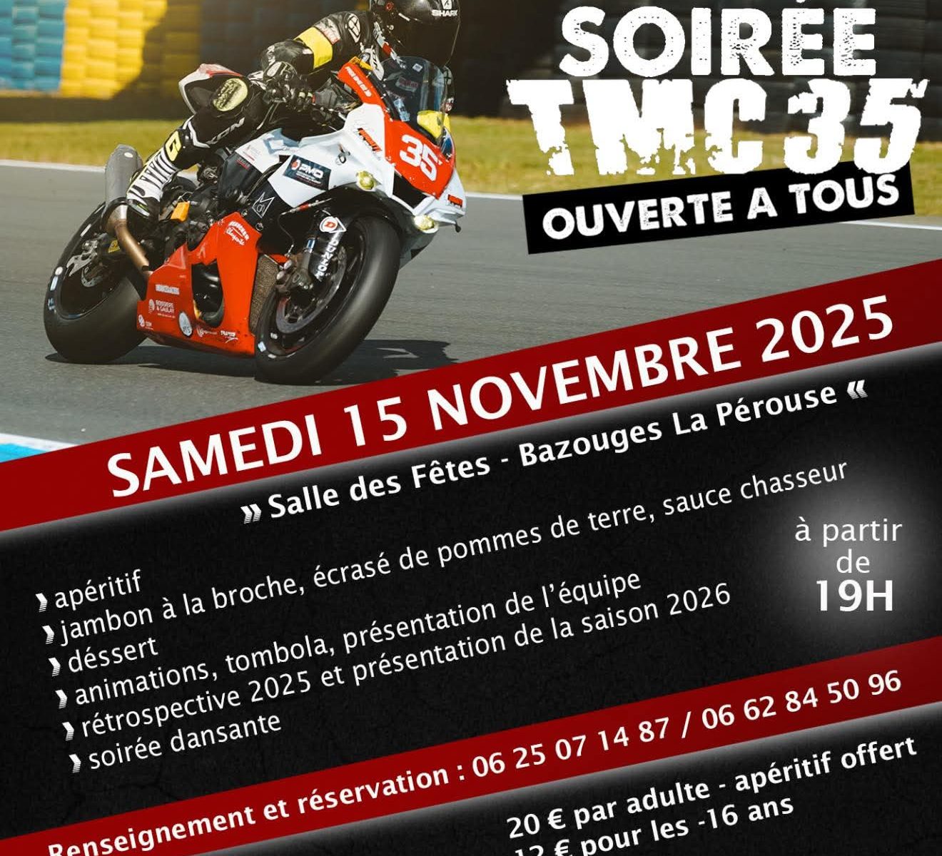 Rendez-vous samedi 15 novembre 2025 à partir de 19 h à la salle des fêtes de Bazouges la Pérouse .