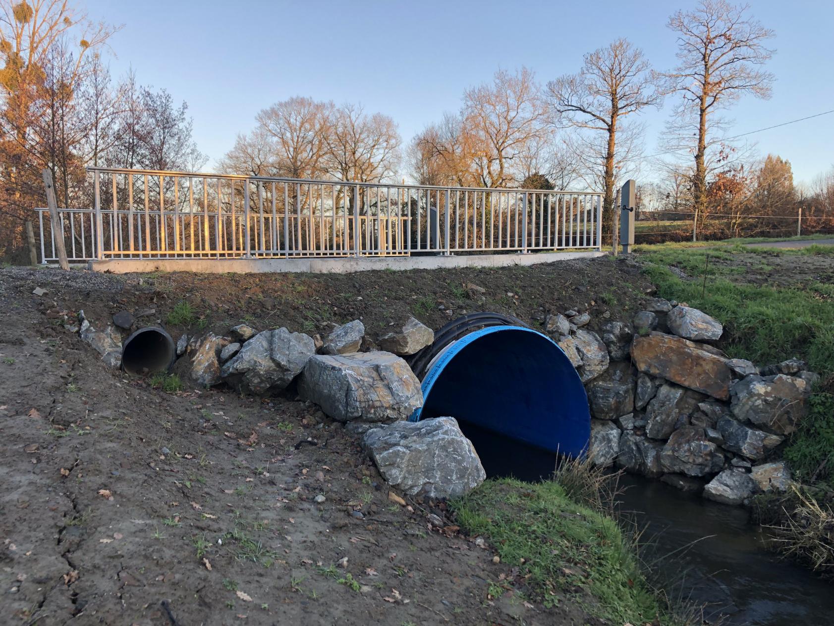 Le projet a également permis l’aménagement d’un passage dédié à la faune, contribuant au respect de la continuité écologique et facilitant le déplacement des espèces animales le long du cours d’eau et de ses abords.